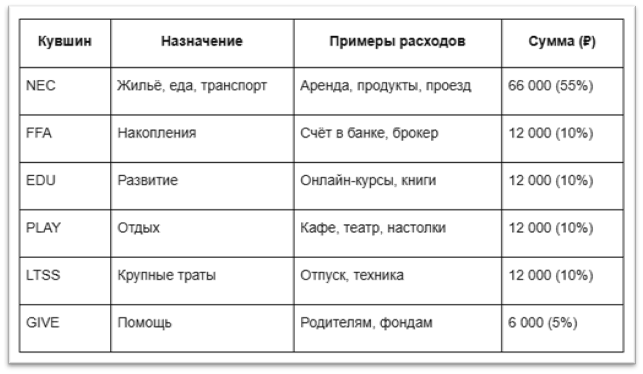 Пример: как распределила бюджет семья ПетровыхСемья Петровых зарабатывает 120 000 ₽ в месяц на двоих. До того как они попробовали «Метод кувшинов» деньги «разлетались» — к концу месяца приходилось брать в долг. Они решили попробовать новый для себя метод и вот что у них вышло: