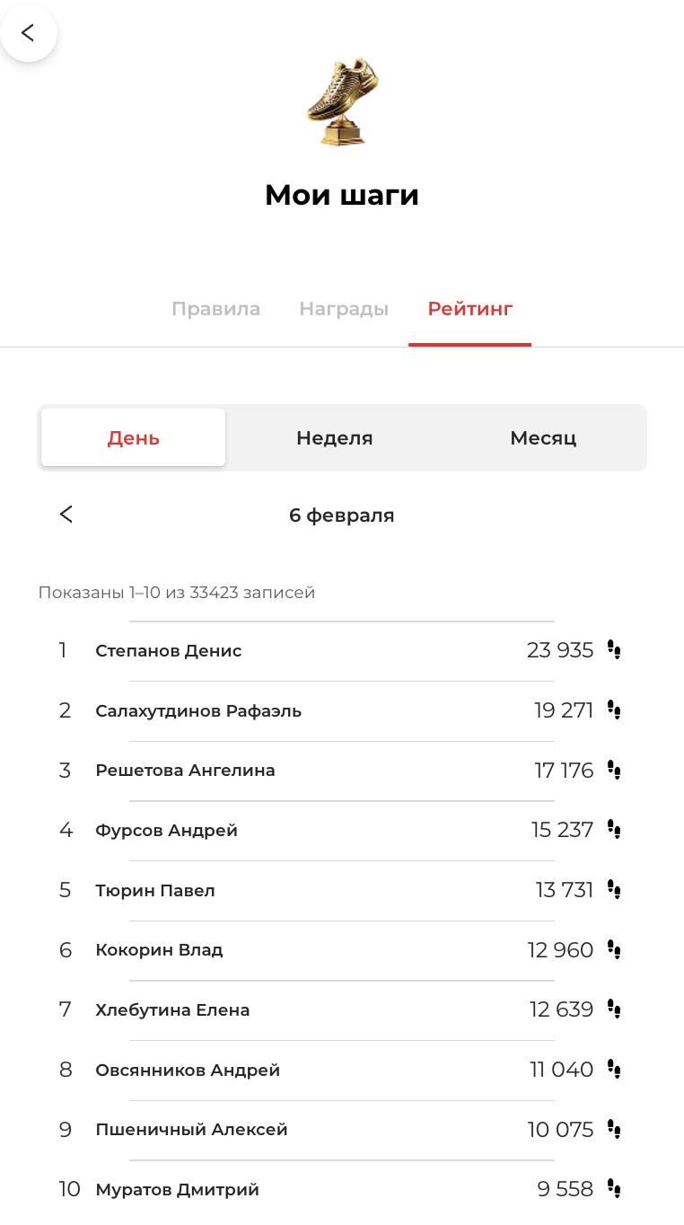 Все ваши шаги автоматически учитываются и сравниваются с активностью других участников программы. Логика проста: чем больше шагов — тем выше в рейтинге.