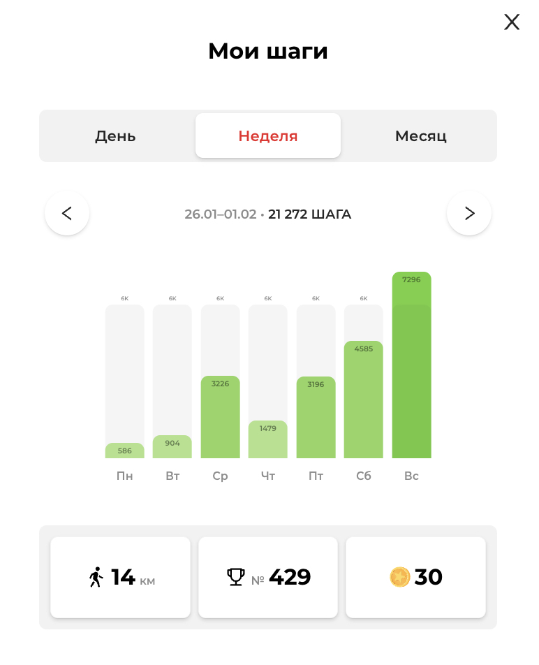 Шаги — наиболее простая и доступная физическая активность, которая учитывается в программе. Даже если вы просто перемещаетесь по дому или идете на работу, ваши шаги подсчитываются и вознаграждаются баллами.